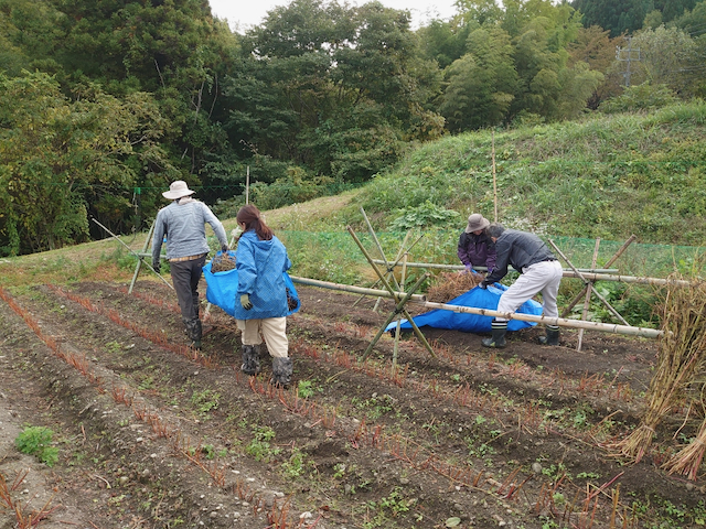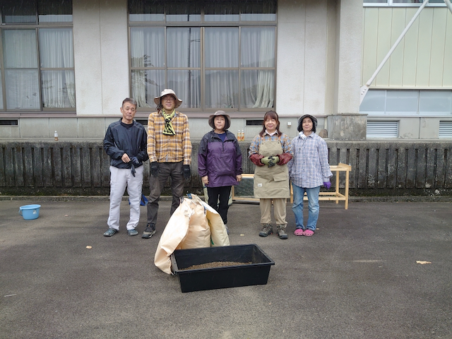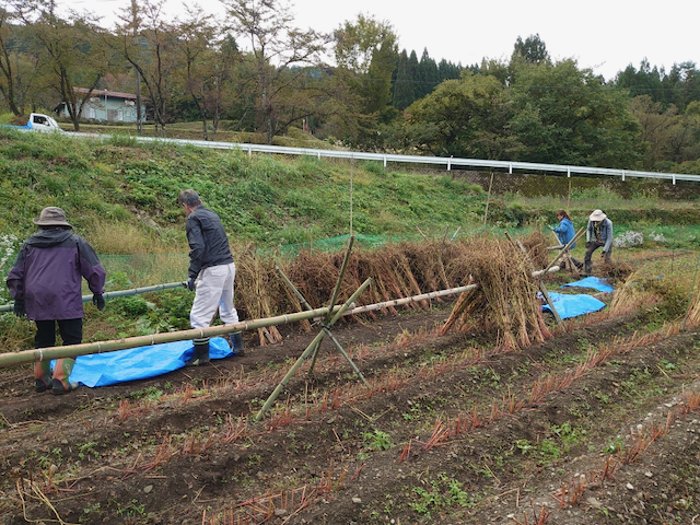 今回は町からの方が4名、六ノ里の方が2名、合計6名の方に参加協力いただき、今年最後の蕎麦栽培の作業を無事に行なえました。