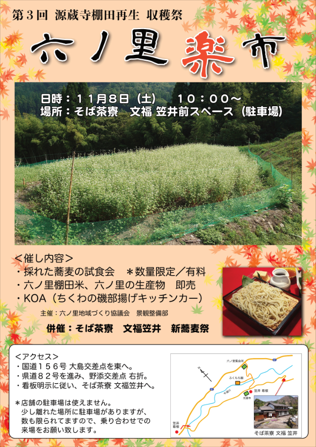 次回は、冒頭に載せました様に、いよいよ収穫祭(六ノ里楽市)です。