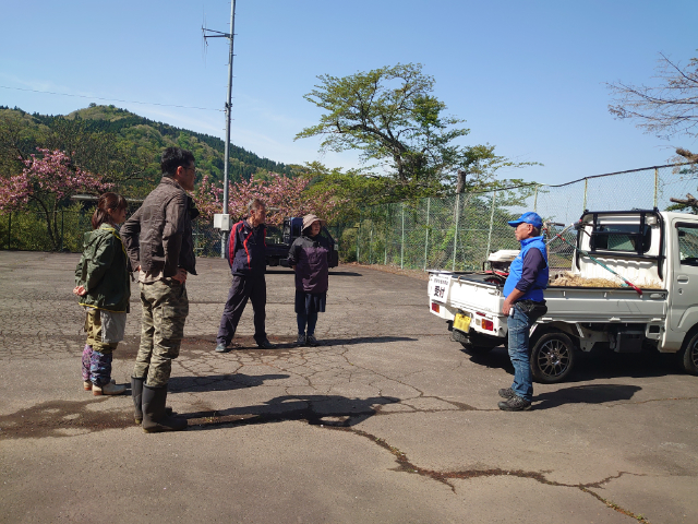 現地に到着後、それぞれの準備が整ったところで、本日の作業について説明しました。