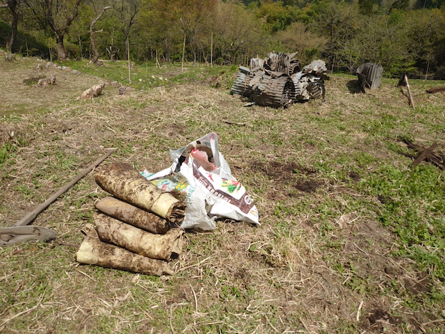 続いて作業の前日に、プラ製トタンの撤去作業の効率を考え、その周辺のみですが草刈りを行っておきました。